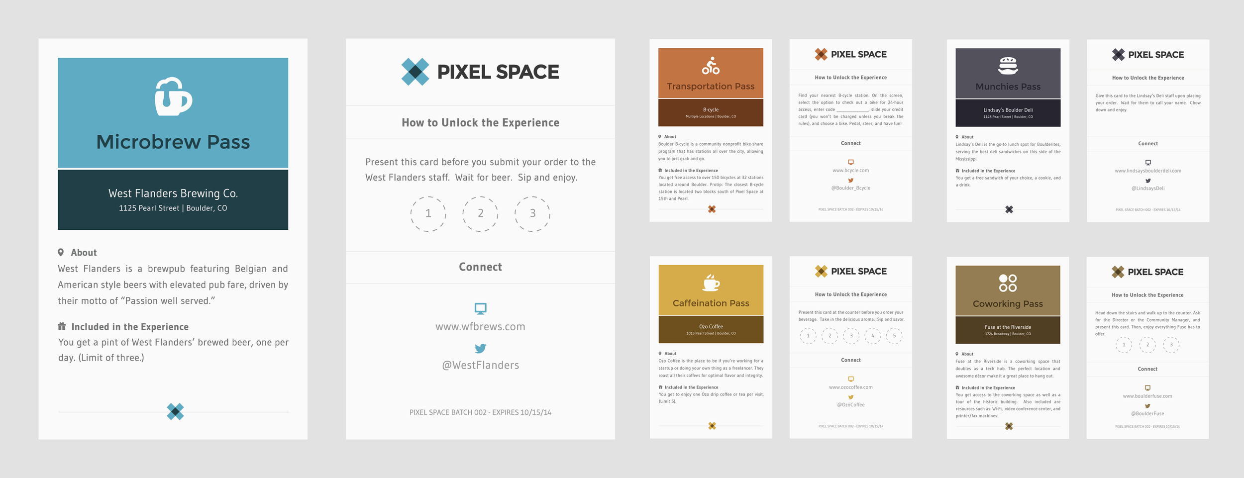 Included with each stay at Pixel Space, Experience Cards lead guests around Boulder, giving them the perfect little adventure. Key partnerships around Boulder provide guest with free coffee, beer, and even a bicycle to explore every little nook.