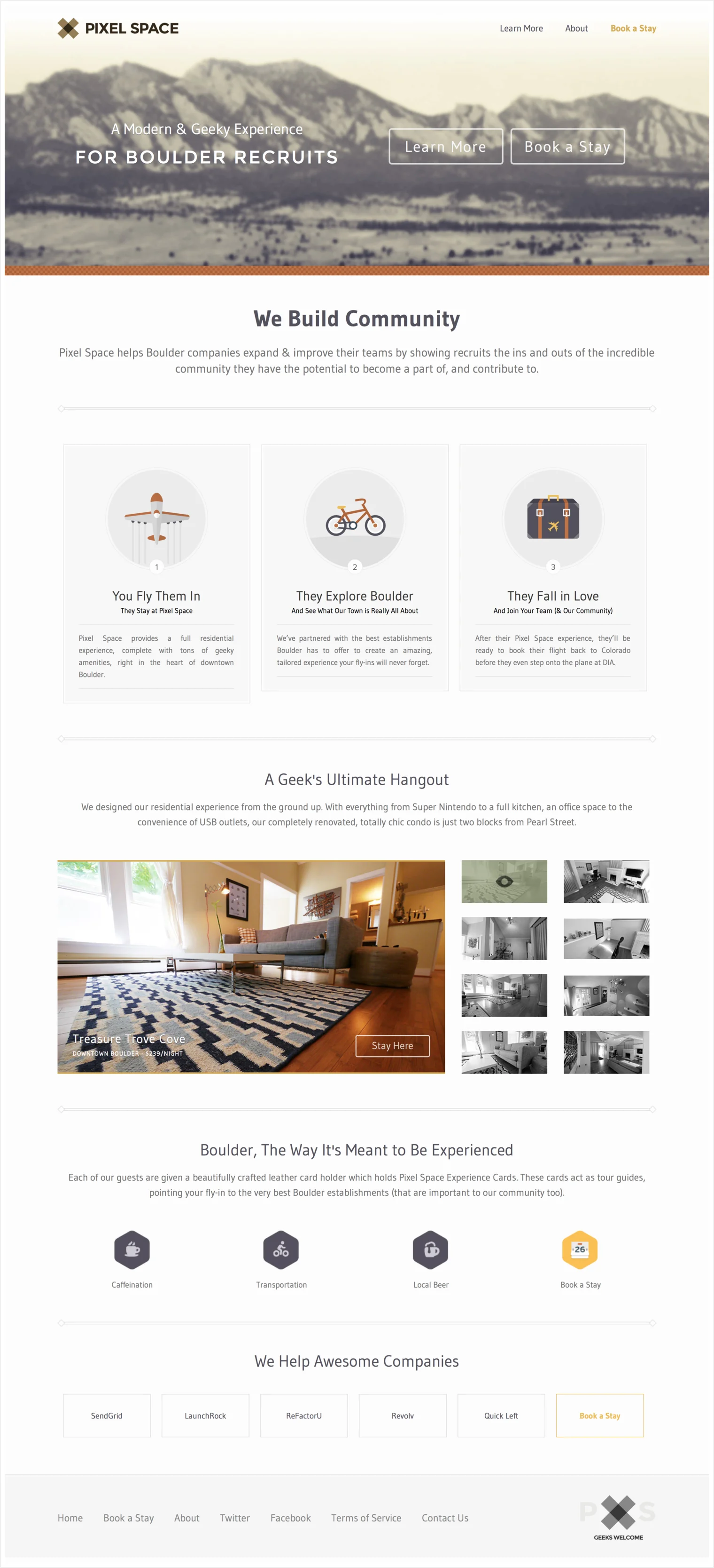 This project came to life because of a passion to give back to the Boulder community. The goal was to create a geeked out portal into the community and increase the acceptance rate of jobs to ultimately grow the community even more.